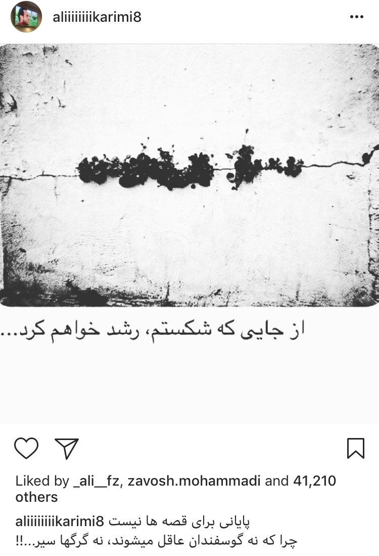 پست جدید و کنایهآمیز علی کریمی + عکس
