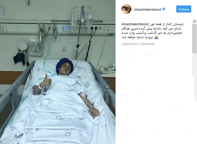 به نقل از این بازیگر، در این صفحه اینستاگرامی آمده است: «دوستان، الناز از همه تون تشکر میکنه، حادثه پیش آمده امروز هنگام فیلمبردارى بهخیر گذشت و آسیب وارد شده بهزودى مداوا خواهد شد.»