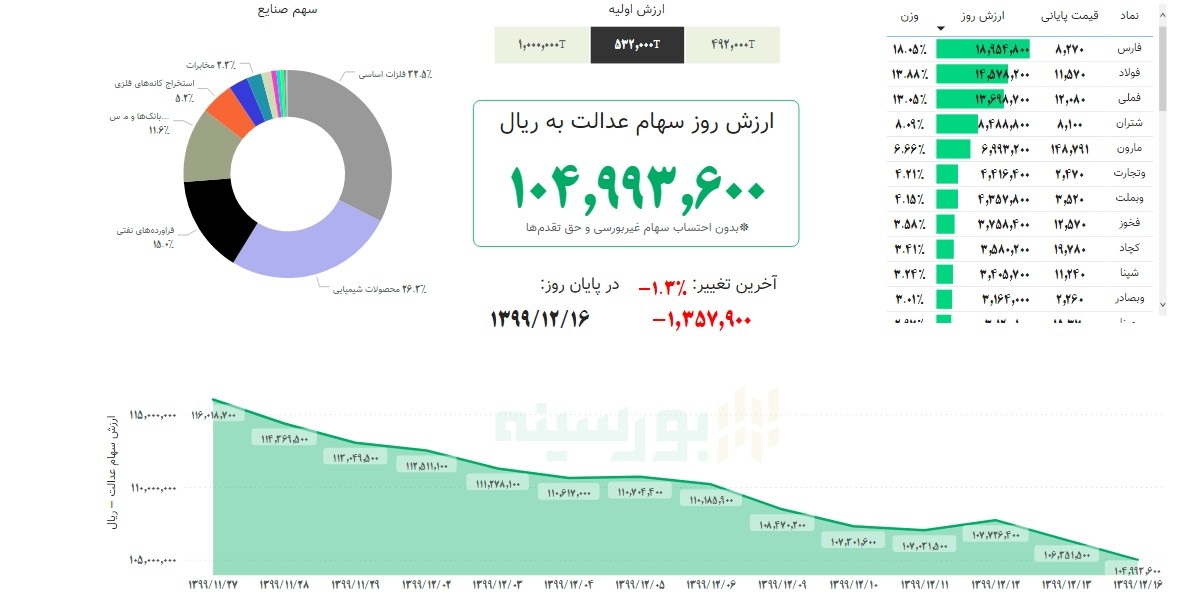 ارزش سهام عدالت امروز ۱۶ اسفند ۹۹
