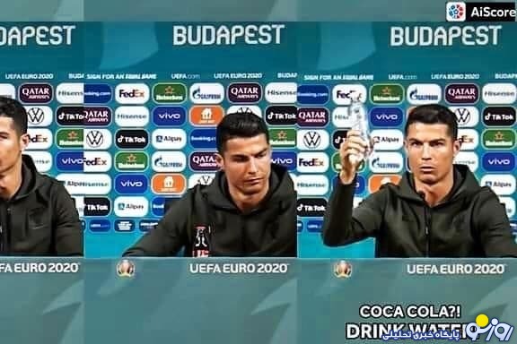 روزنو :رونالدو، دو شیشه نوشابه کوکاکولا را که در مقابلش قرار داشتند، برداشت و کنار گذاشت و بطری آبی را که با خود آورده بود بود به جای شیشه‌های نوشابه گذاشت و به پرتغالی گفت:" آب بخورید نه کوکاکولا" .