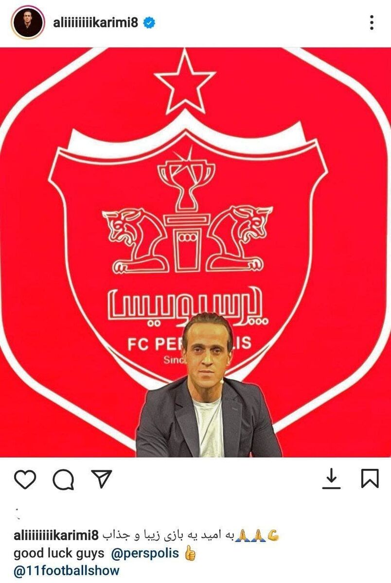 کریمی در این پست اینستاگرامی ضمن منشن باشگاه پرسپولیس، برای سرخ ها آرزوی موفقیت کرد.