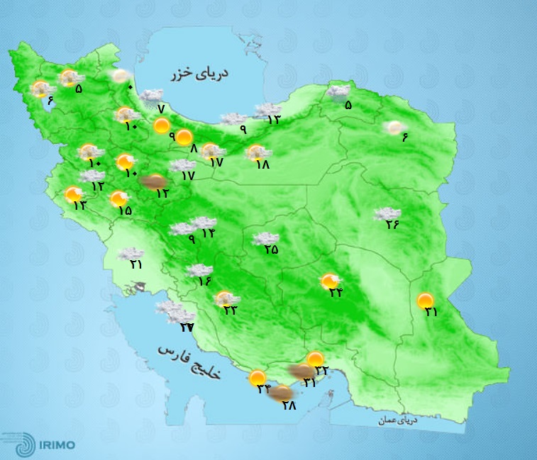 وضعیت آب و هوا، امروز ۲۴ اسفند ۱۴۰۰ / ورود توده گرد و خاک از غرب کشور