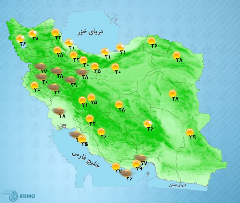 وضعیت آب و هوا، امروز ۶ تیر ۱۴۰۱ / نفوذ توده گرد و خاک از عراق به مناطق غربی کشور / تهرانی‌ها امروز دمای ۴۰ درجه را تجربه می‌کنند