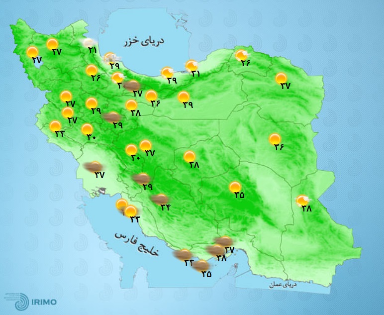 وضععیت آب و هوا، امروز ۸ تیر ۱۴۰۱