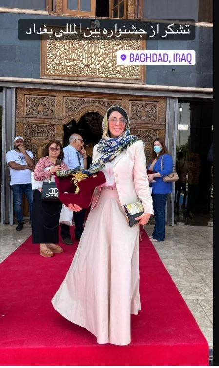 اما این تنها حاشیه حضور لیلا بلوکات در عراق نبود. در تصاویر بعدی او در مرکز عراق و مقابل ساختمان جشنواره فیلم با تیپ و ژستی هنری دیده می شود.
