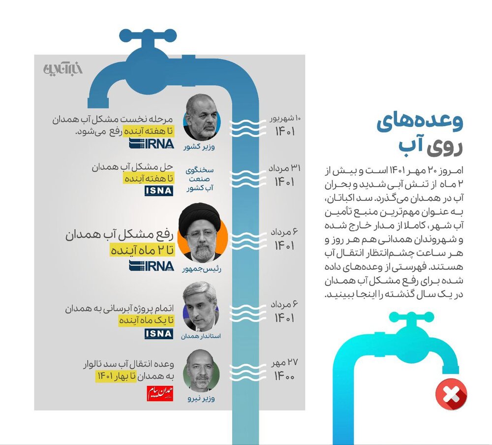 اینفوگرافیک | وعدههای روی آب/ قولهای محقق نشده دولت برای رفع مشکل آب همدان