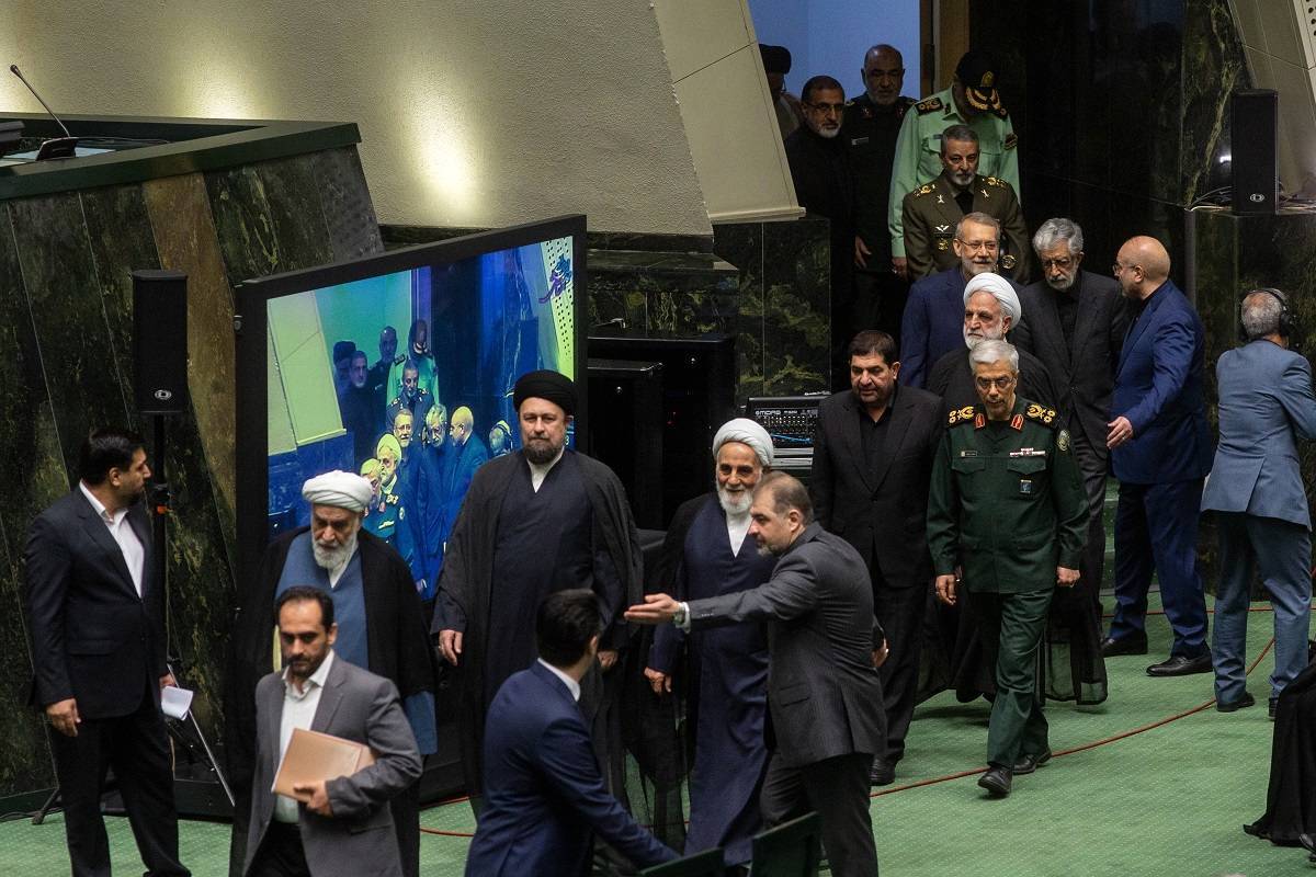 صدای فلش دوربین‌ها یک لحظه قطع نمی‌شد، هر لحظه یکی از مسئولان عالی‌رتبه کشور وارد صحن علنی مجلس می‌شدند. محمد محمدی‌گلپایگانی (رئیس دفتر رهبری)، سیدیحیی رحیم‌صفوی (مشاور عالی رهبر انقلاب در امور نیروهای مسلح)، غلامحسین محسنی‌اژه‌ای (رئیس قوه قضائیه)، محمدجعفر منتظری (رئیس دیوان عالی کشور)، حمزه خلیلی (معاون اول قوه‌قضائیه)، احمدرضا دستغیب (رئیس دیوان محاسبات)، احمد جنتی، علی‌اکبر ناطق‌نوری، غلامعلی حدادعادل، علی لاریجانی، سیدحسن خمینی، سرلشکر سیدعبدالرحیم موسوی (فرمانده ارتش)، سردار سرلشکر حسین سلامی (فرمانده کل سپاه)، سردار احمدرضا رادان (فرمانده کل نیروی انتظامی)، امیر دریادار حبیب‌الله سیاری (معاون هماهنگ‌کننده ارتش)، شهرام ایرانی (فرمانده نیروی دریایی ارتش)، سردار قاآنی (فرمانده سپاه قدس)، حمید واحدی (فرمانده نیروی هوایی)، سرلشکر محمد باقری (رئیس جدید ستاد کل نیروهای مسلح)، حسینی‌بوشهری (عضو مجلس خبرگان و رئیس شورایعالی حوزه علمیه قم)، عبدالحسین خسروپناه (دبیر شورایعالی انقلاب فرهنگی)، طحان‌نظیف (سخنگوی شورای نگهبان)، محمد اسلامی (رئیس سازمان انرژی اتمی)، پیمان جبلی (رئیس سازمان صداوسیما)، علی اکبری (رئیس شورای سیاستگذاری ائمه جمعه)، محمد مخبر (سرپرست ریاست‌جمهوری)، احمد وحیدی (وزیر کشور)، محمدمهدی اسماعیلی (وزیر فرهنگ و ارشاد اسلامی)، کیومرث هاشمی (وزیر ورزش و جوانان)، سیداسماعیل خطیب (وزیر اطلاعات)، محمدرضا آشتیانی (وزیر دفاع)، علی بهادری‌جهرمی (سخنگوی دولت)، محمدعلی نیکبخت (وزیر جهاد کشاورزی)، عیسی زارع‌پور (وزیر ارتباطات و فناوری اطلاعات)، بهرام عین‌اللهی (وزیر بهداشت، درمان و آموزش پزشکی)، علی باقری‌کنی (سرپرست وزارت امور خارجه)، رضا مرادصحرایی (وزیر آموزش و پرورش)، احسان خاندوزی (وزیر اقتصاد)، صولت مرتضوی (وزیر تعاون، کار و رفاه اجتماعی)، محمد دهقان (معاون حقوقی رئیس‌جمهور)، انسیه خزعلی (معاون رئیس‌جمهور در امور زنان)، محسن منصوری (معاون اجرایی دولت)، سیدامیرحسین قاضی‌زاده‌هاشمی (رئیس بنیاد شهید و امور ایثارگران)، مهدی چمران (رئیس شورای شهر تهران) و علیرضا زاکانی (شهردار تهران) در این جلسه حضور داشتند.