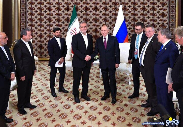 پزشكيان و پوتين اما در تركمنستان روابط دو كشور ايران و روسيه را راهبردي و تنگاتنگ عنوان كرده و توسعه همكاري‌ها را اولويت دو كشور برشمردند. رييس‌جمهور ديروز و پس از پايان سفر دو روزه‌اش به تركمنستان با بيان اينكه در سفر به تركمنستان با روساي جمهور روسيه، تركمنستان و ازبكستان گفت‌وگوهاي مفصلي داشتيم، گفت: در اين مذاكرات درباره گاز، راه، برق و بازارچه‌هاي مرزي تفاهماتي حاصل شد و قرار است در كارگروه مشترك اقتصادي كه طي يك ماه آينده در تهران برگزار مي‌شود، اين تفاهمات نهايي و امضا شود.