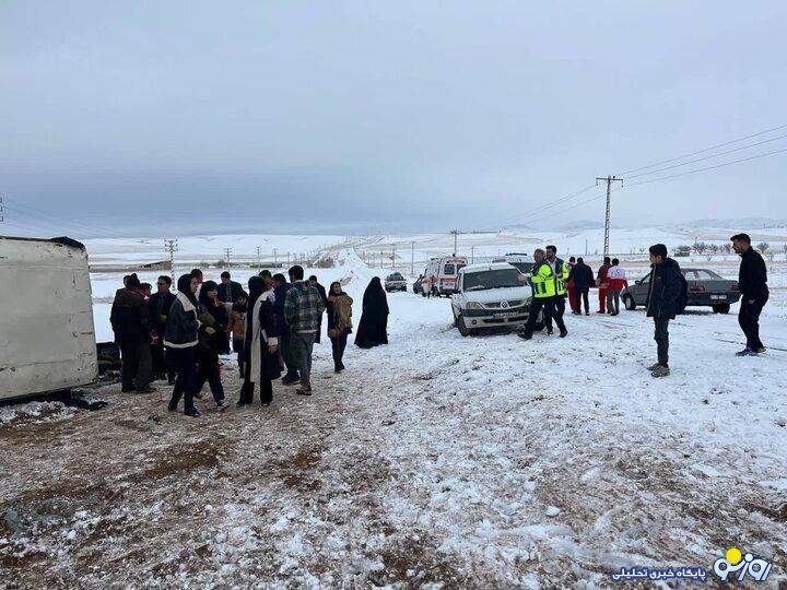 واژگونی مینی بوس حامل دانش آموزان در زنجان؛ ۱۱ نفر مصدوم شدند